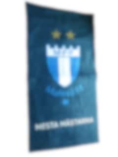 Torka dig med vinnarkänsla! Denna marinblå Malmö FF‑handduk pryds av ett tydligt och kraftfullt “Mesta Mästarna”‑motiv, tillsammans med klubbens emblem – en hyllning till Sveriges mest framgångsrika fotbollsklubb.